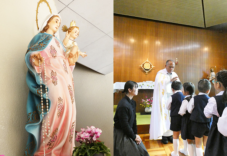 そして、生活の中で「祈る」時間を大切にし、神さまに望まれて生まれてきたこと、与えられた命を精一杯、輝かせられるような教育を目指します。