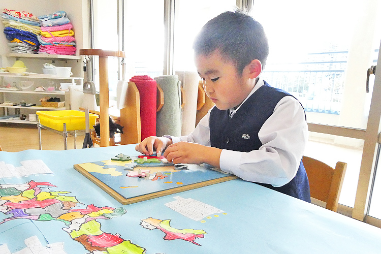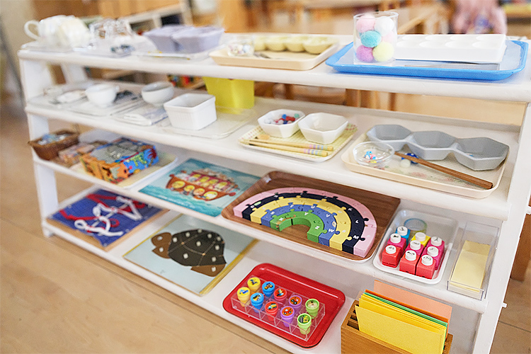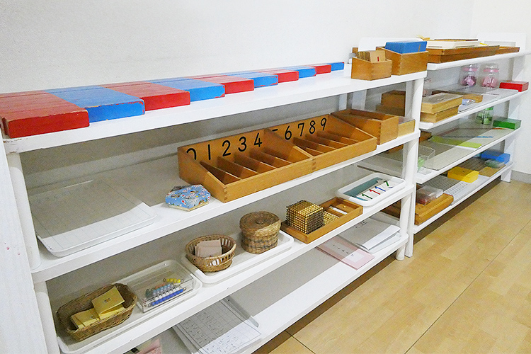 - 子どもが自分で自由に教具を選べる環境構成