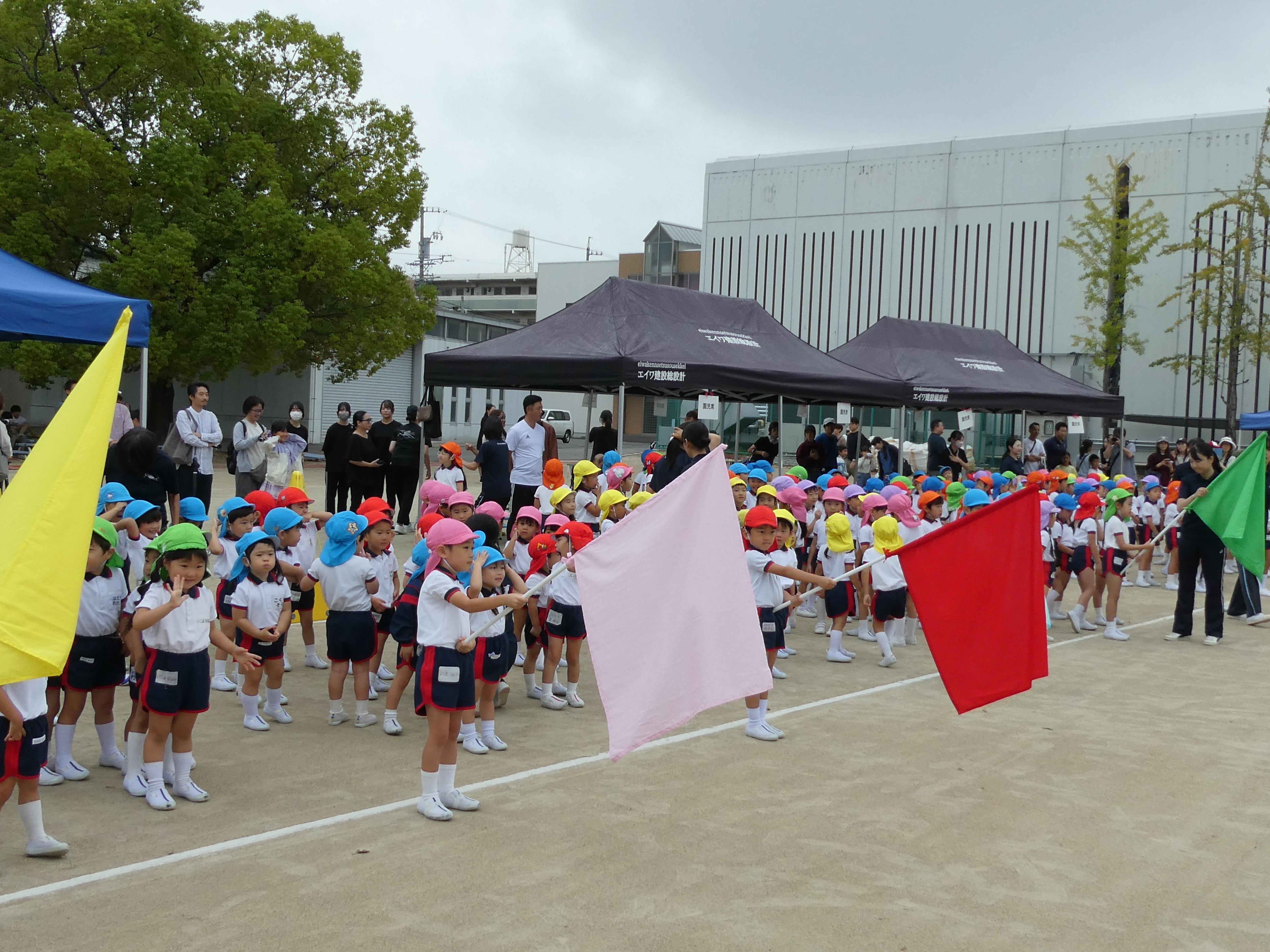 カラーフラッグを掲げて、元気に運動会がスタートしました!