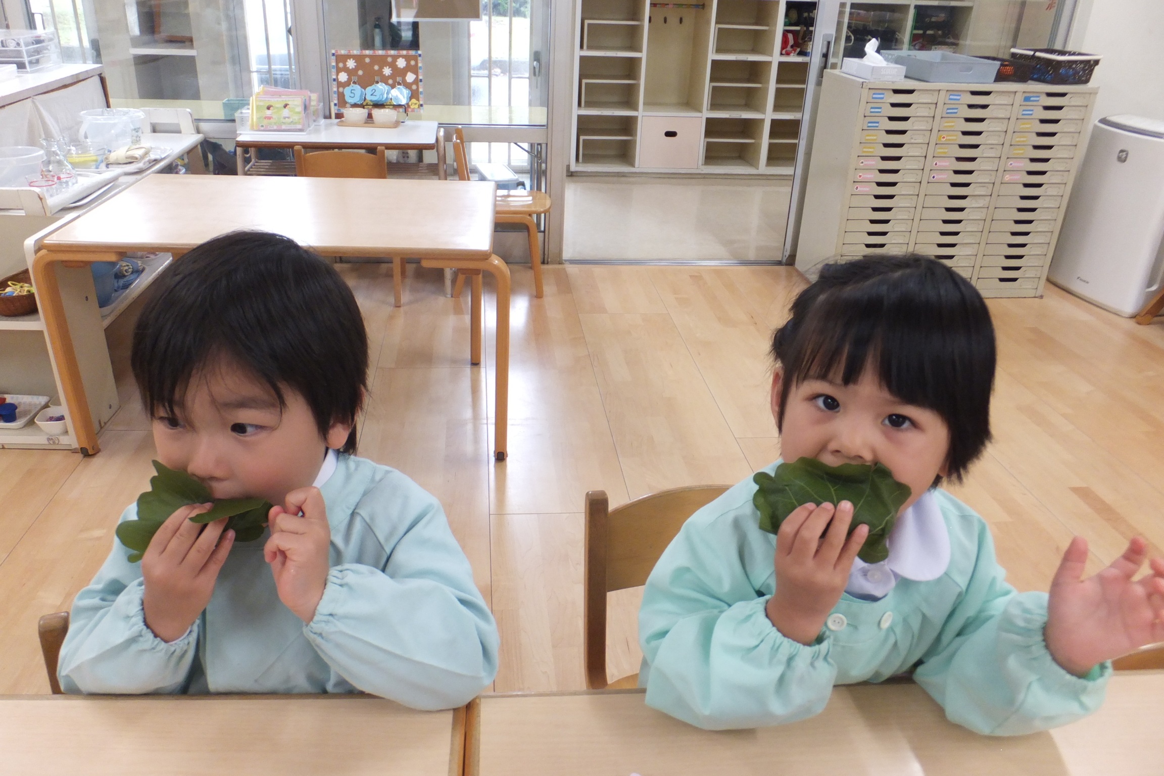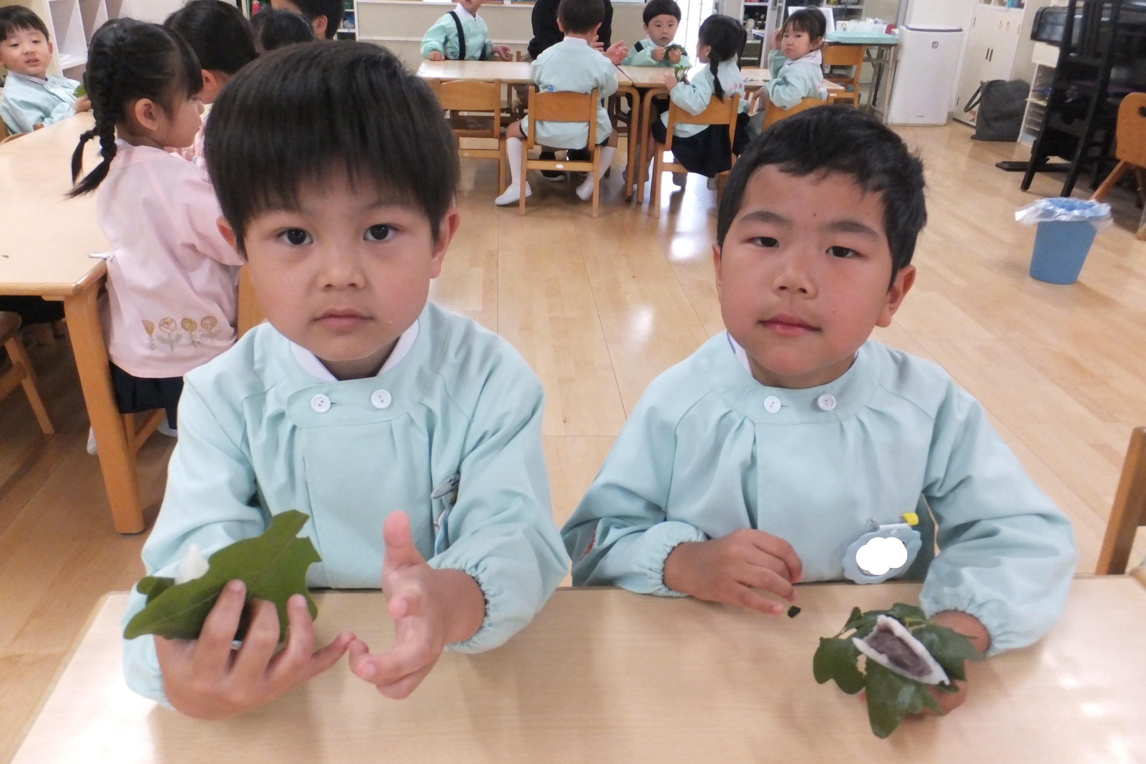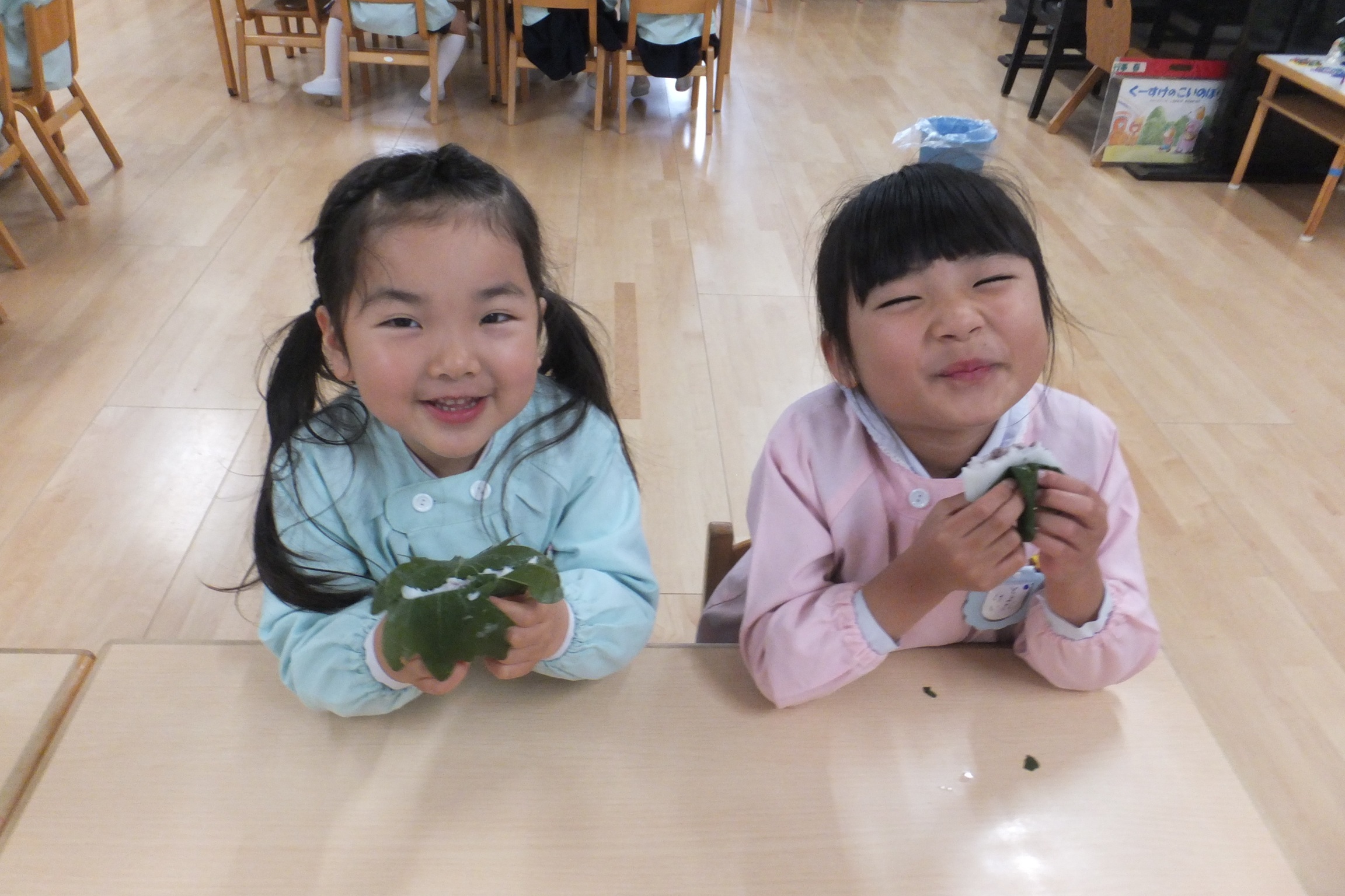 お友だちと食べるかしわもちは、とてもおいしかったですね![]()