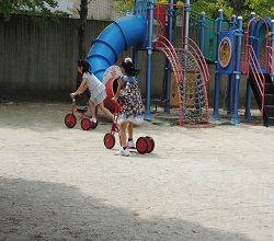 園庭で追いかけっこ、すべり台、たけうま・・・
