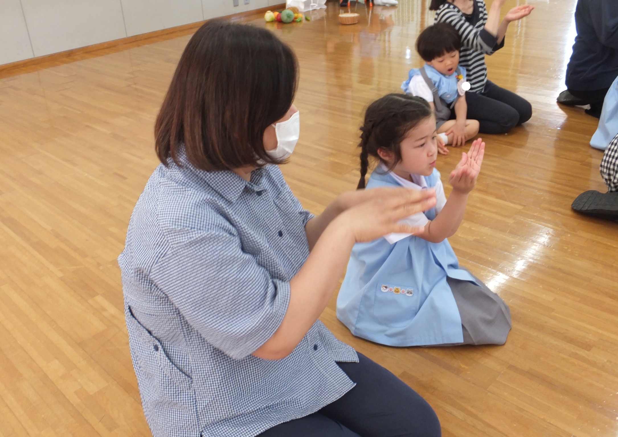 最後は一緒に、覚えた手あそびをやってみました。