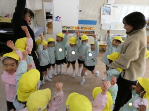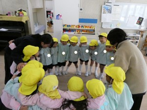 鬼たいじをするため、朝から円陣を組んで気合いを入れました!