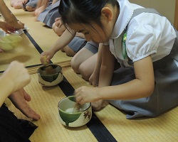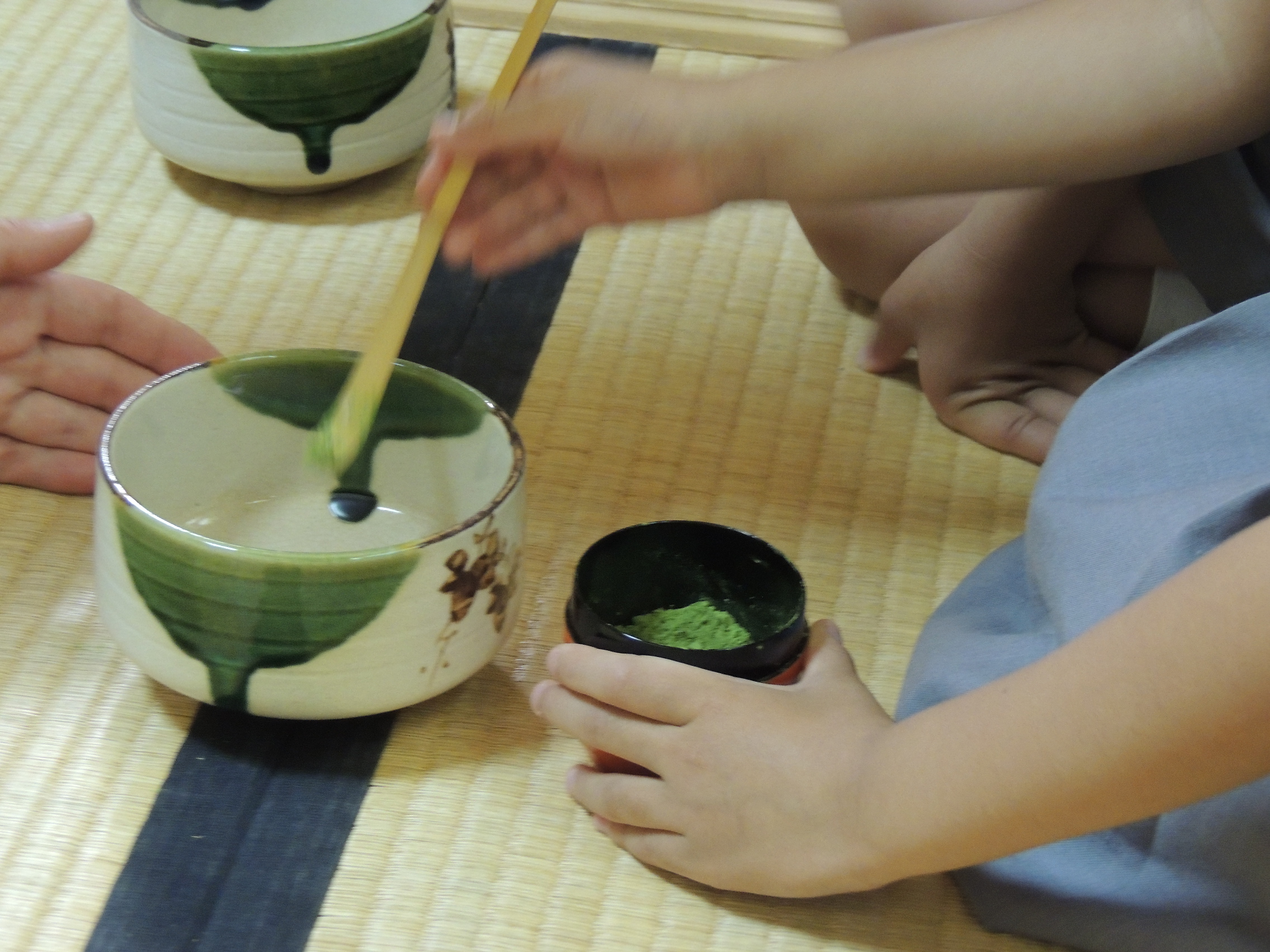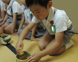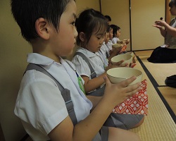 年長組は5月からはじめたお茶のおけいこをはじめています。