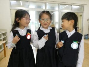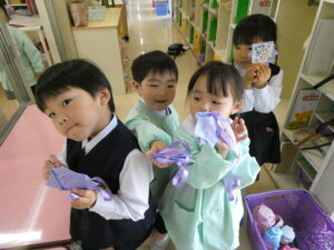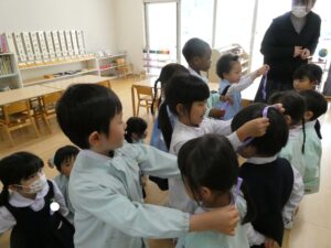 新入園のお友だちにペンダントのプレゼントを渡しました。