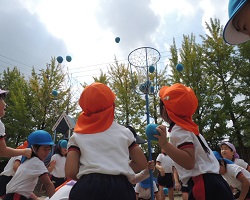 年中組が赤・黄・青の玉を