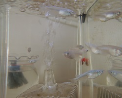 たまごから誕生した、ちいさな ちいさな めだかたちが