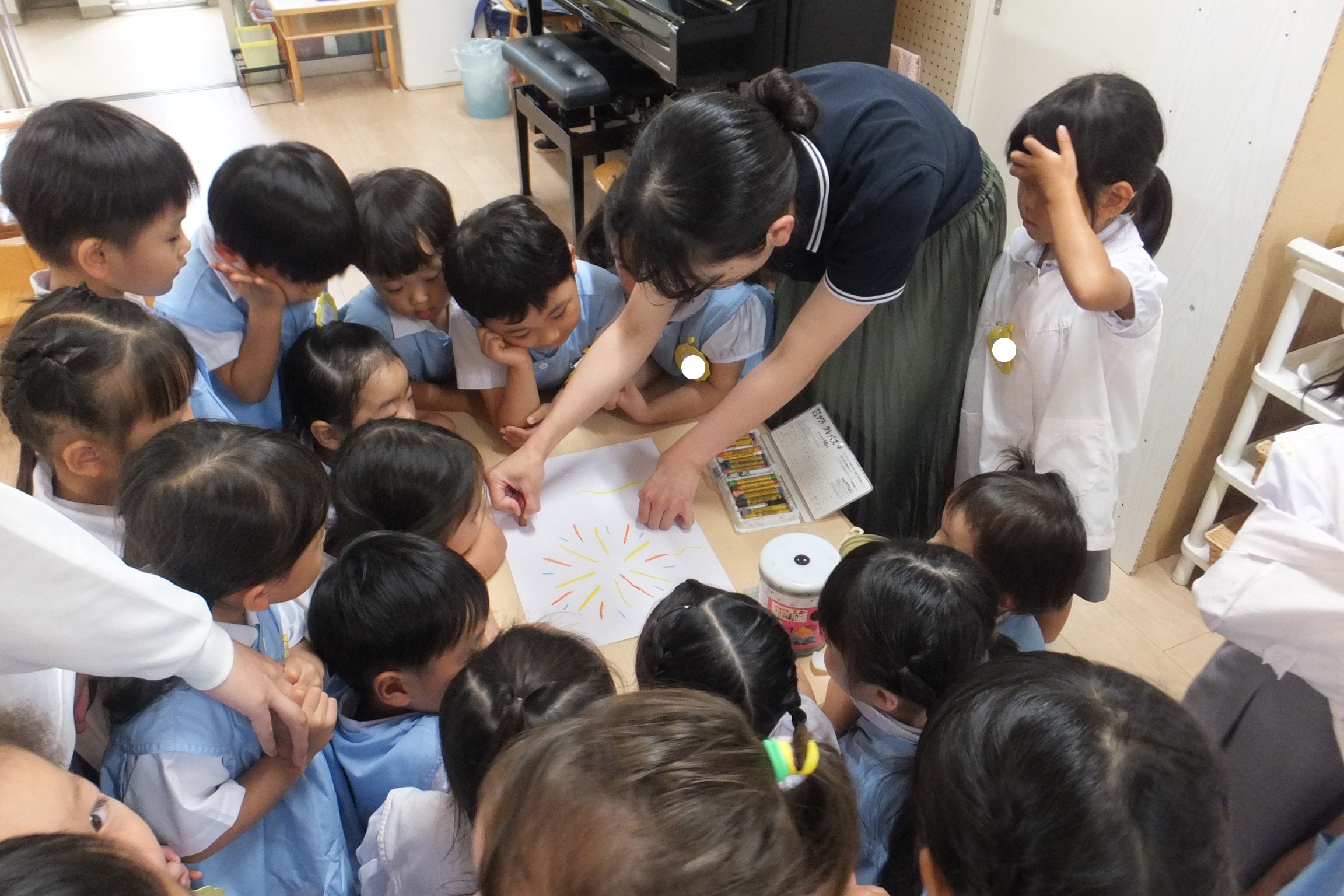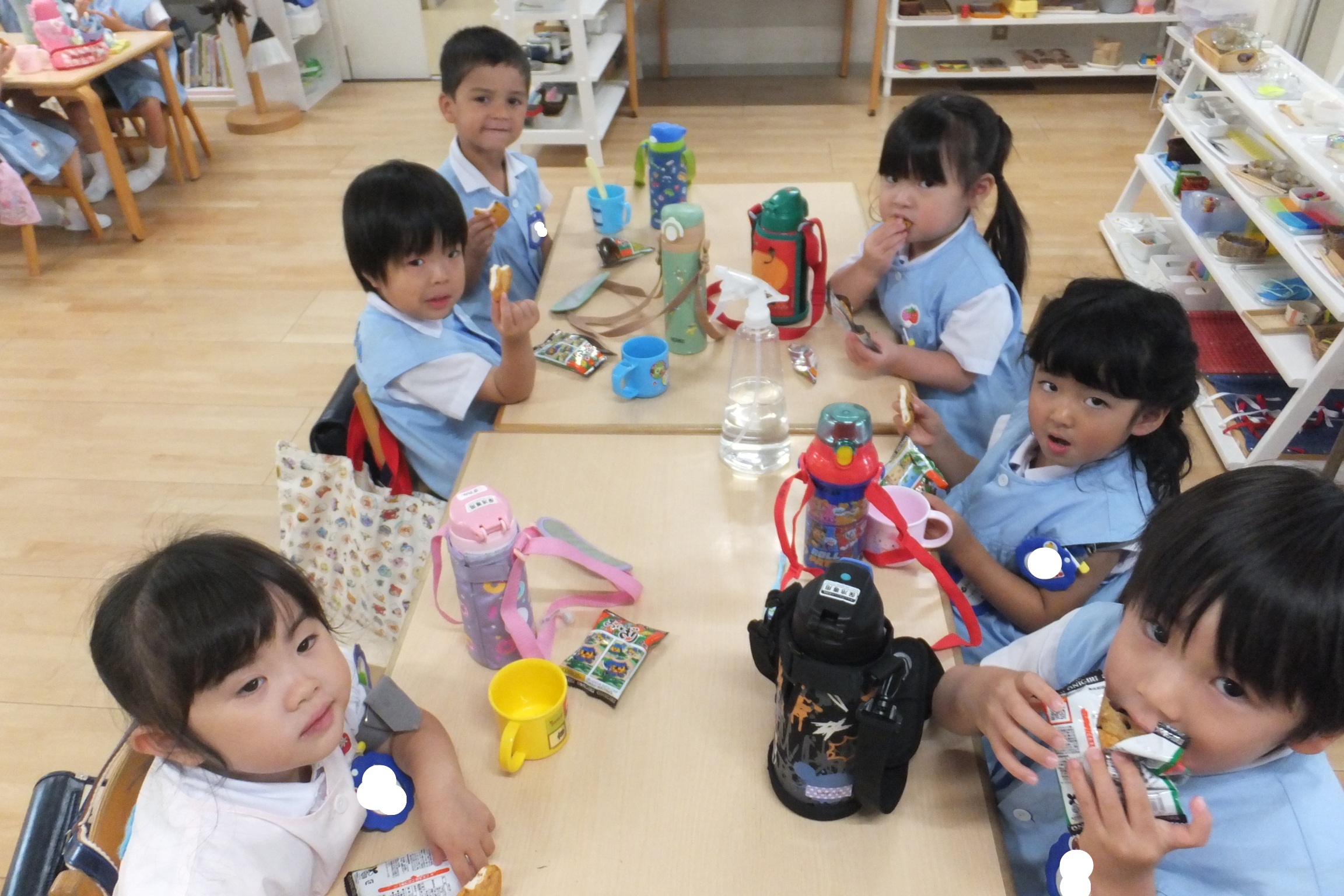 絵の具を塗り広げたり、みんなでおやつを食べたり・・・