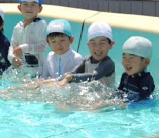 子どもたちは、水遊びを楽しみながらも