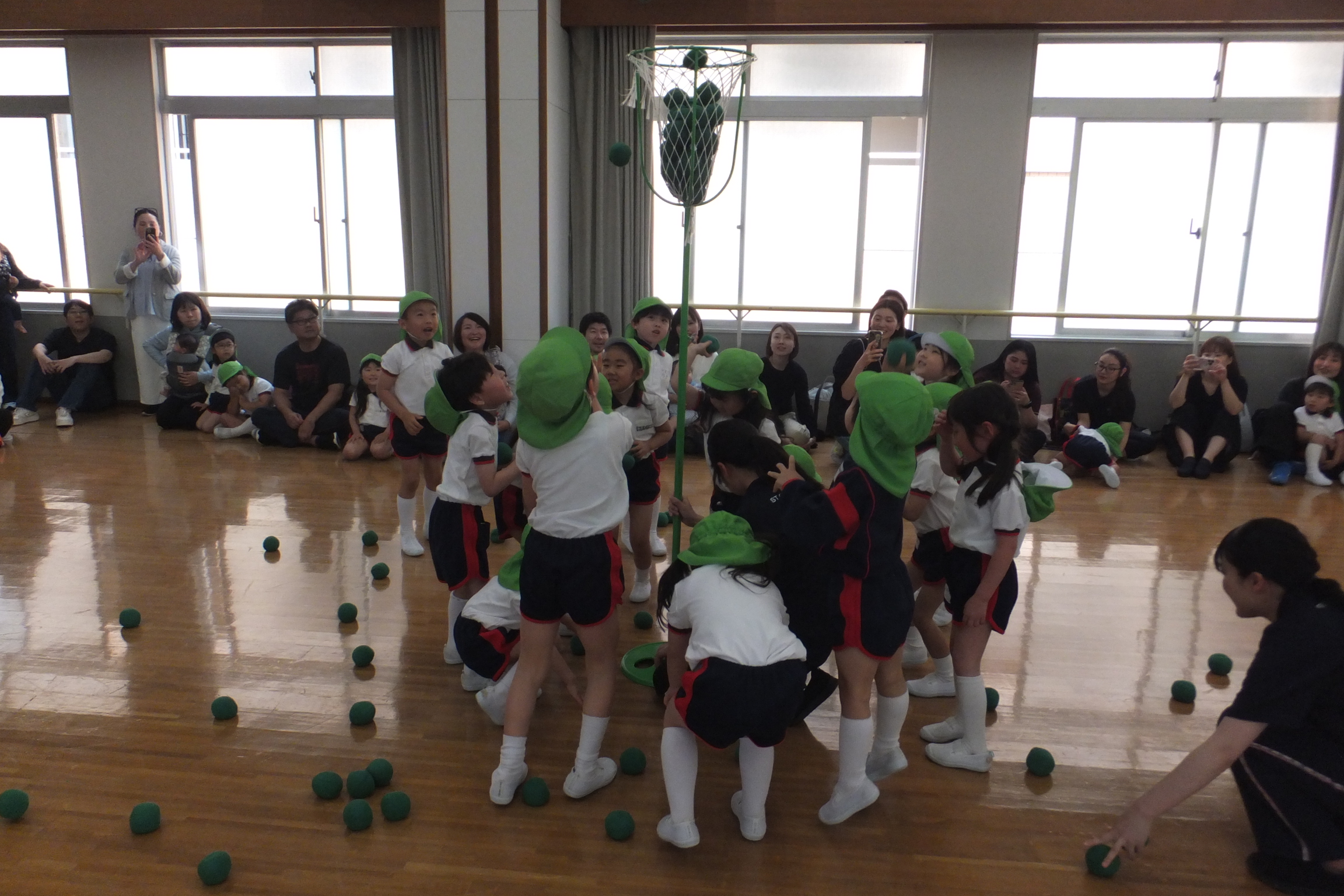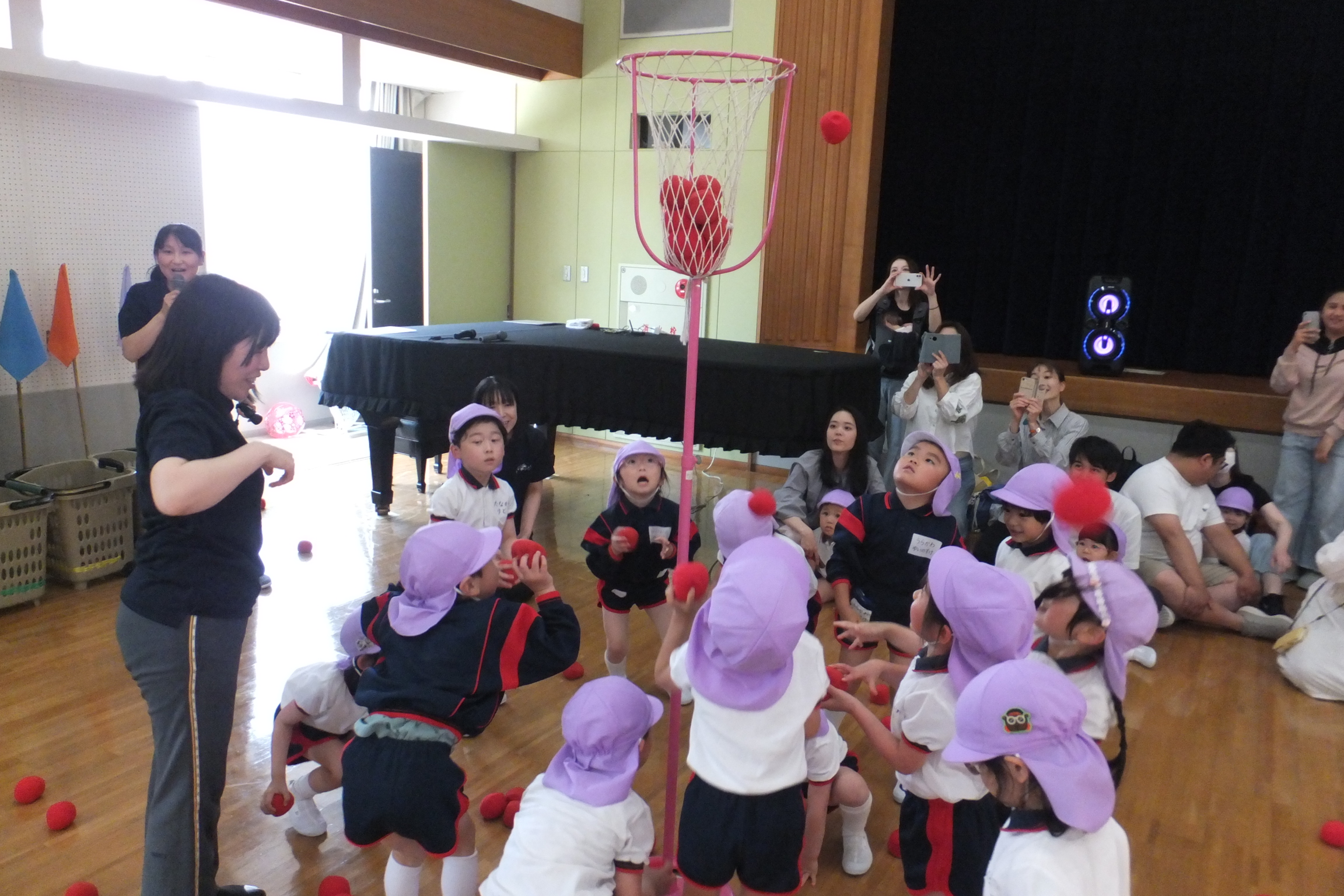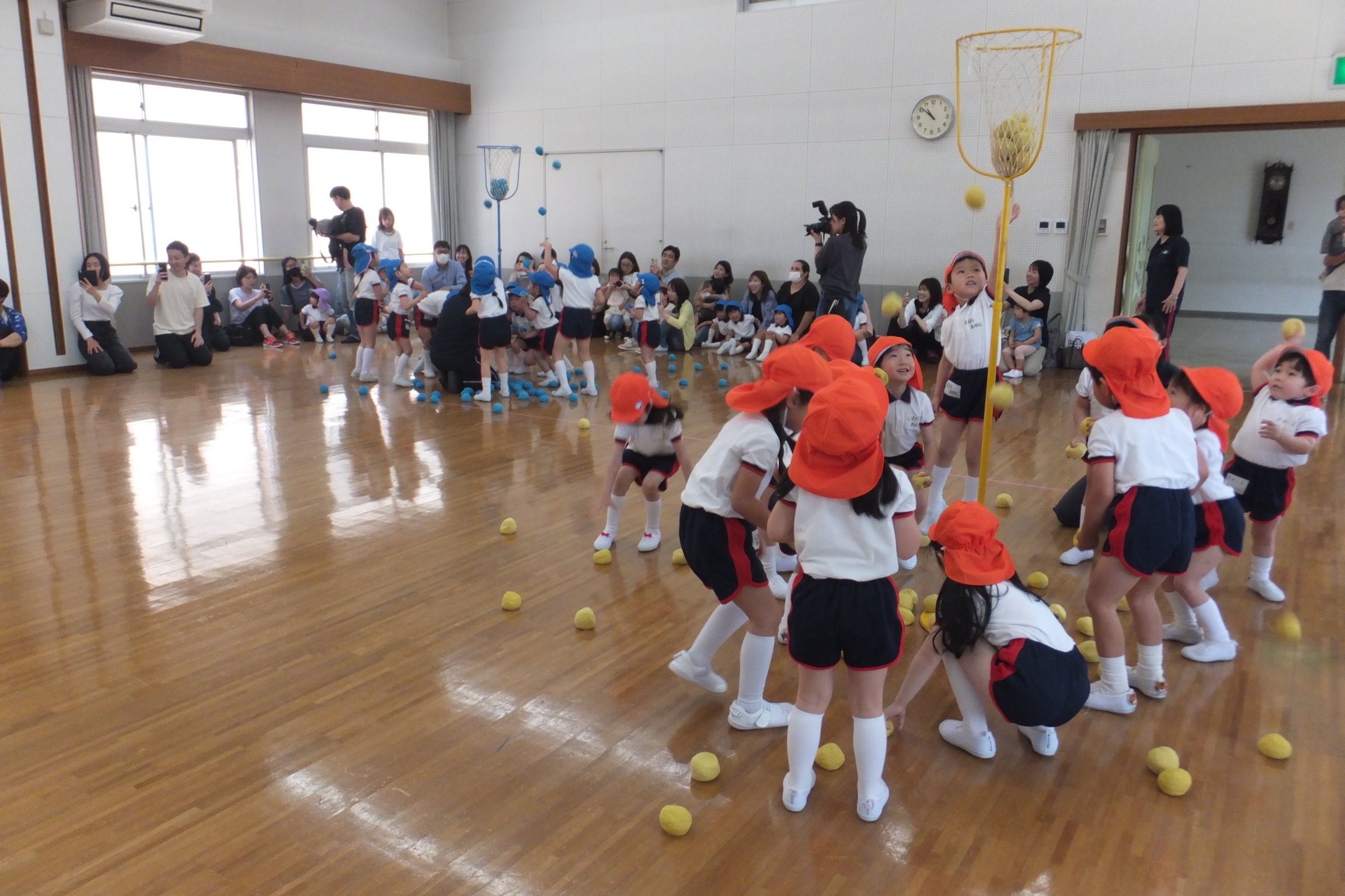 年中・年長さんたちの玉入れも大盛り上がり![]()