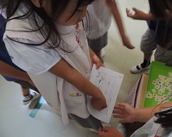 楽しんで校内をまわれるように、シールを貼っていきます。
