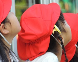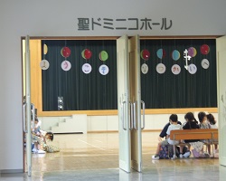 ホールには年長組さんの姿がありました。