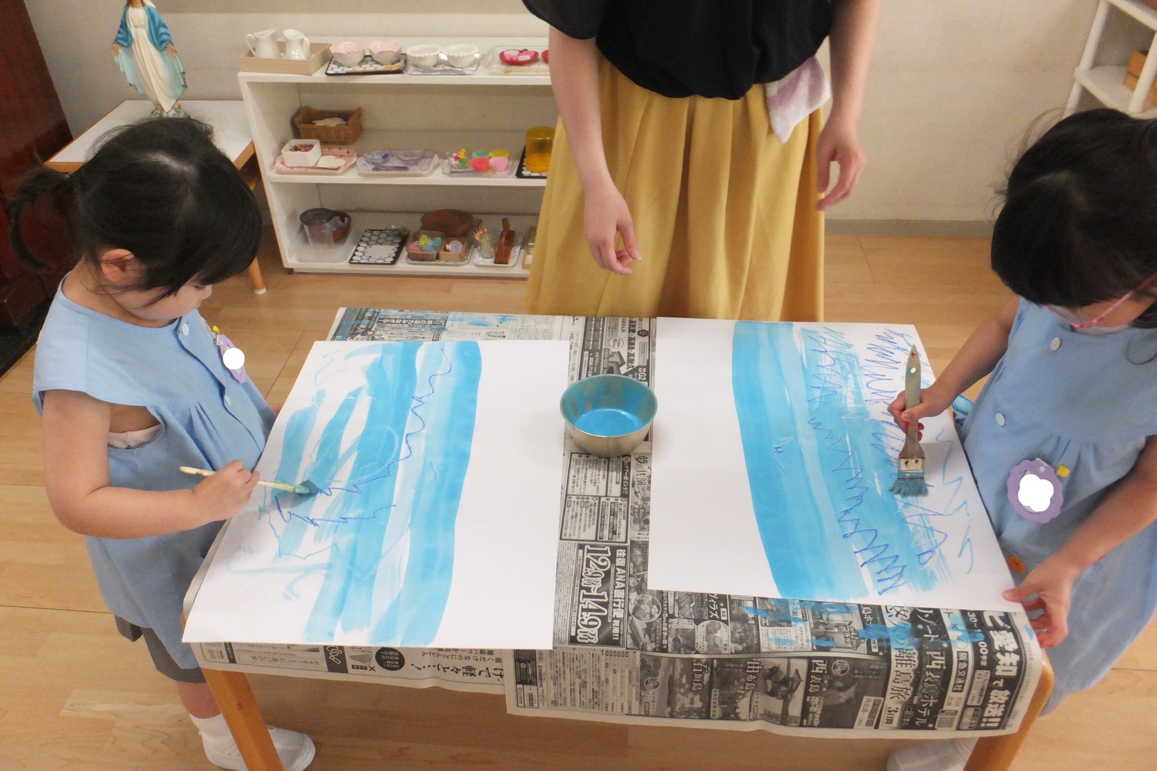 絵の具を塗りひろげて・・うみを描きました!