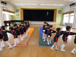 整列をしたり、マットの上を歩いたり、走ったり…