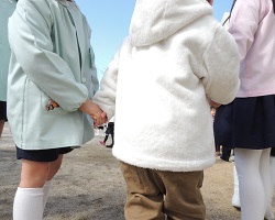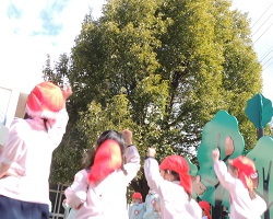 「こんにちは」ちいさなおともだちが、在園児の輪の中に・・・