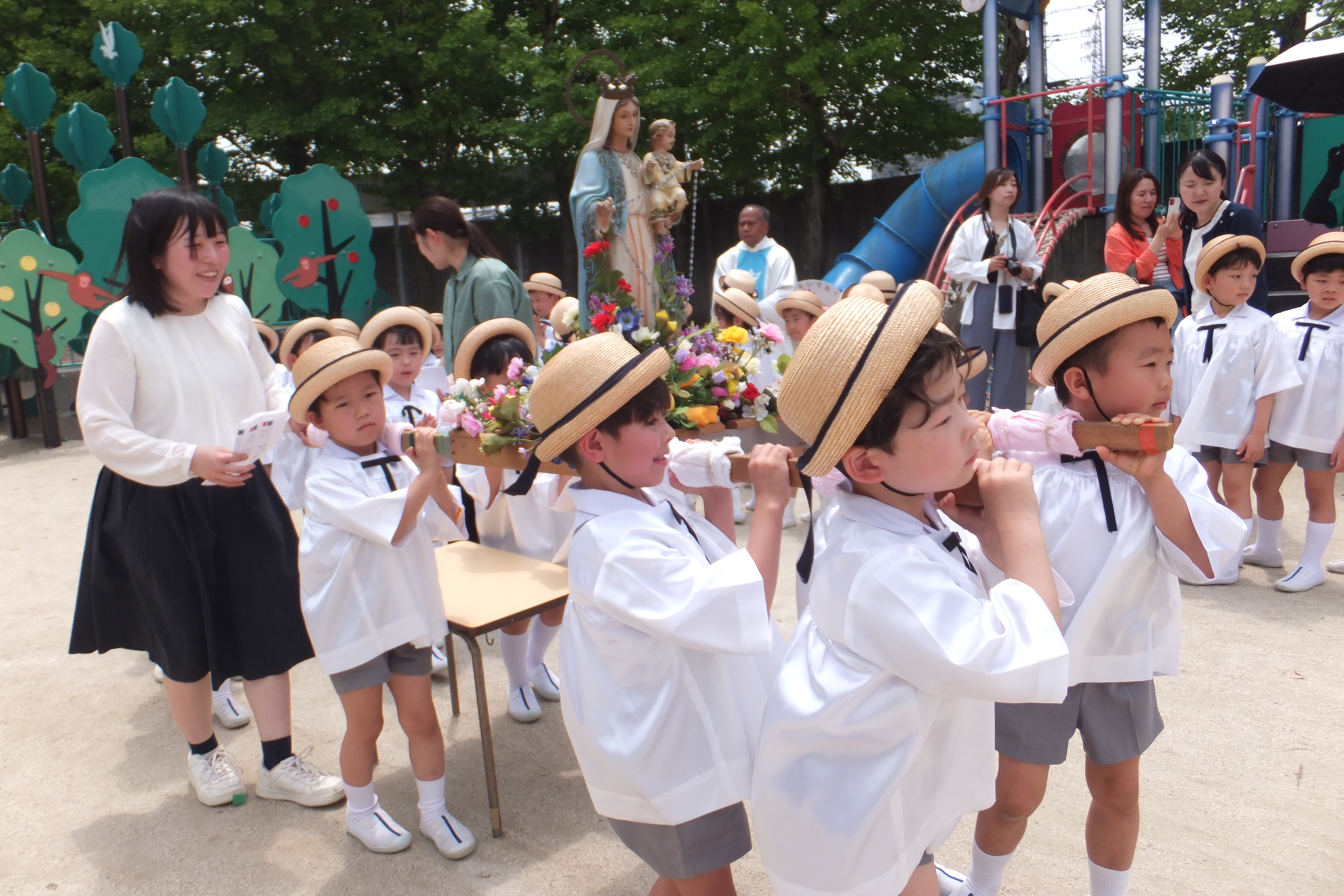 マリアさまを乗せて、一生懸命、担ぎました。