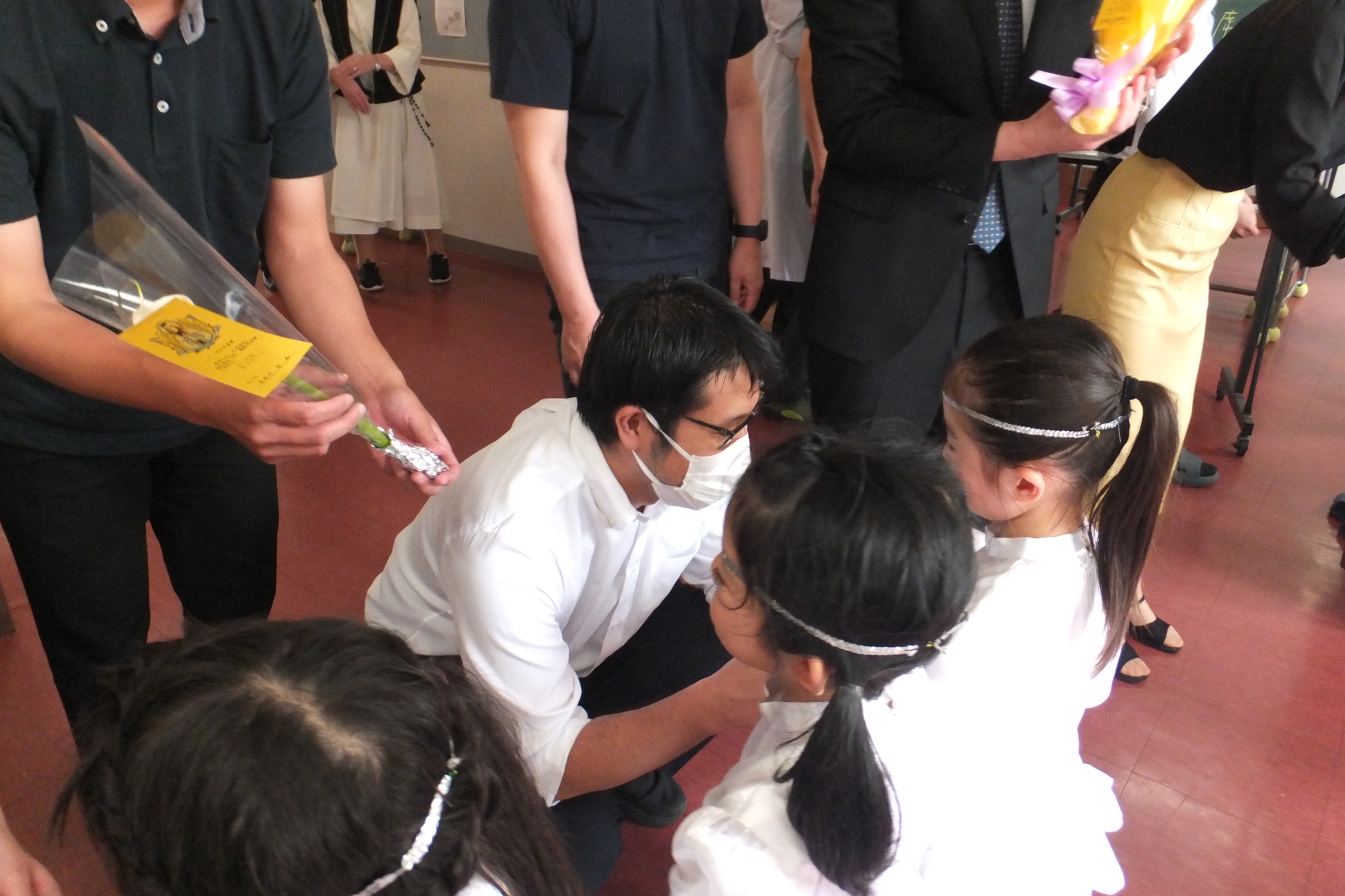 持ってきたお花をお渡しに行きました。