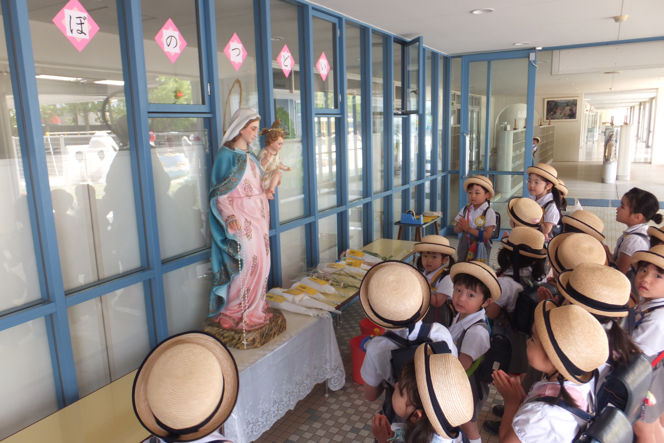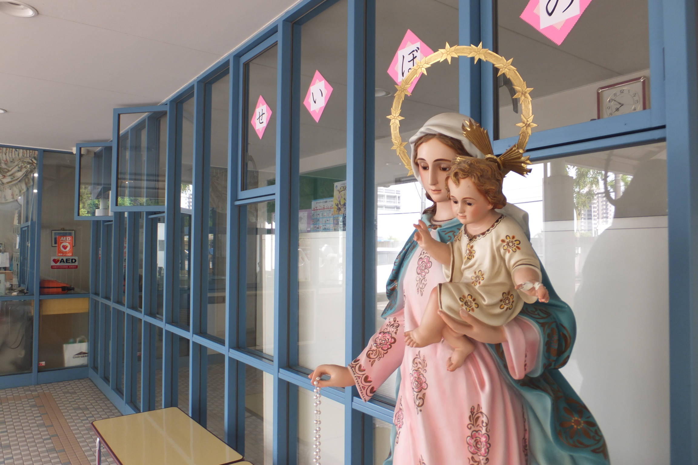 玄関では、みんなのお母さん「マリアさま」が