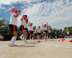玉入れの勝利に跳びあがる!年中さん