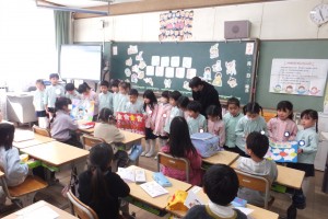 最後は、年長さんが準備したプレゼントを手渡しました。
