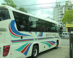 年長組の子どもたちは、大型バスに乗って