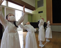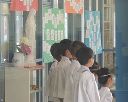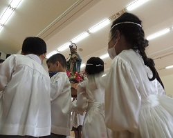 年長児のお兄さんたちは、マリアさまを肩に歩き