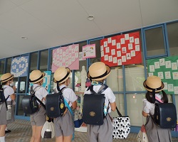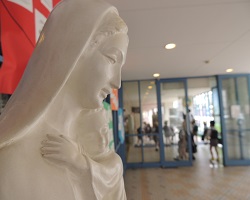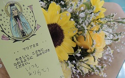 玄関にみなさんから届いたマリアさまのハガキを飾りました。