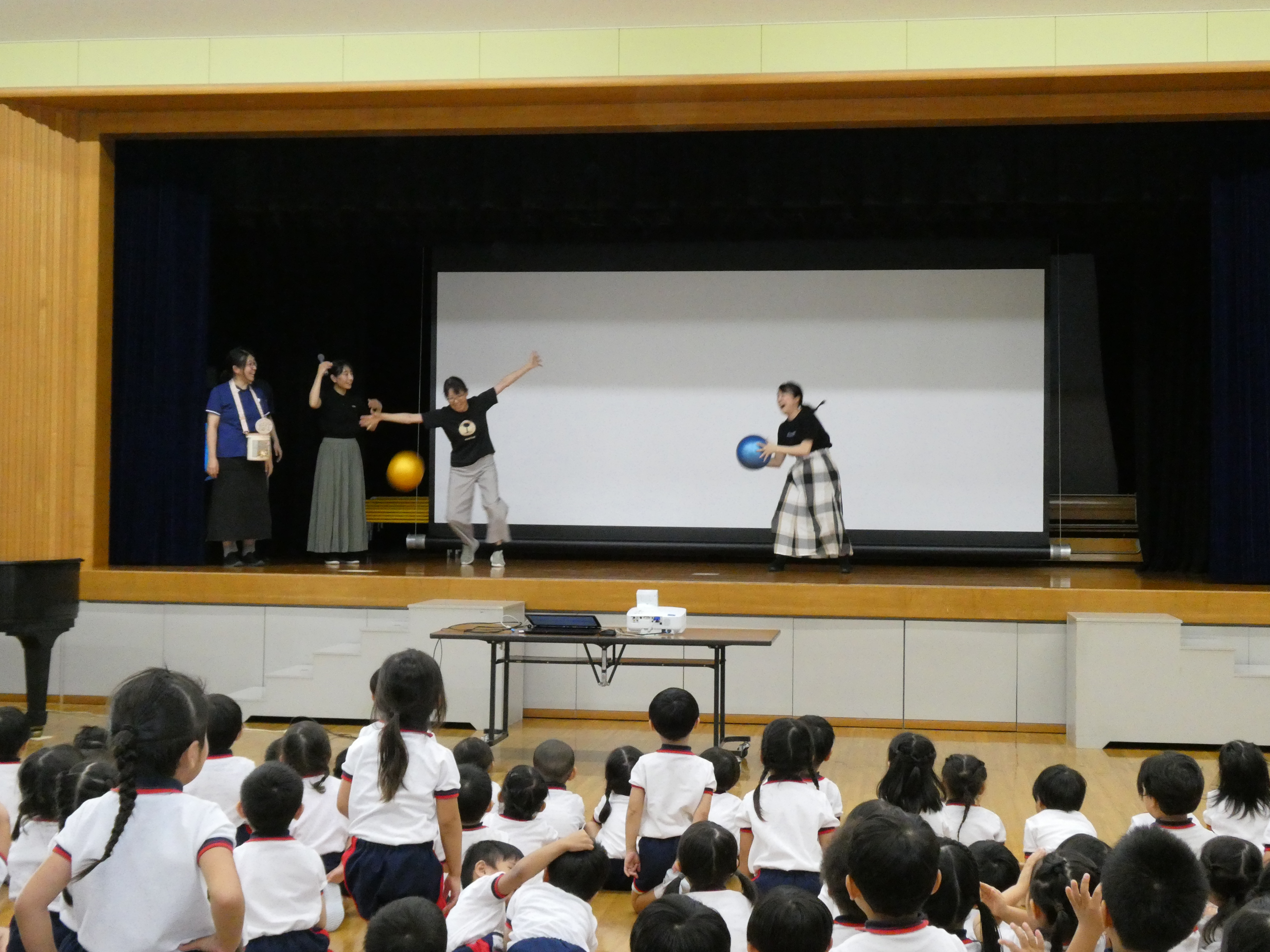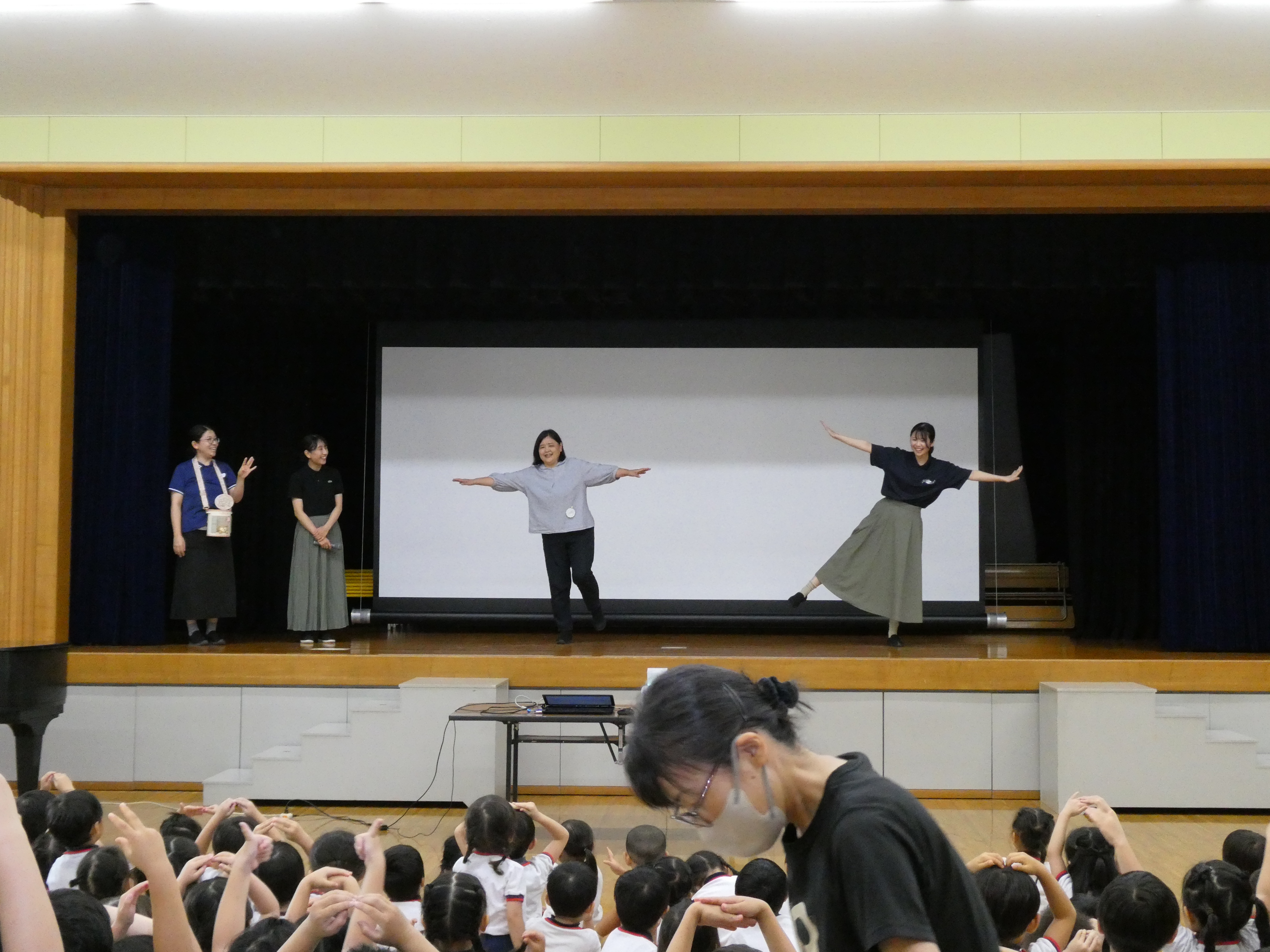 先生たちの出し物は、いろんな動きに挑戦コーナー!